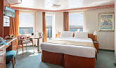 Самые привилегированные каюты с точки зрения их площади и расположения, а также особых видов сервиса. Благодаря наличию балкона увеличенной площади и панорамным окнам в каюте всегда много света. Балкон оснащен парой шезлонгов и столиком. Максимальная вместимость: 4 чел