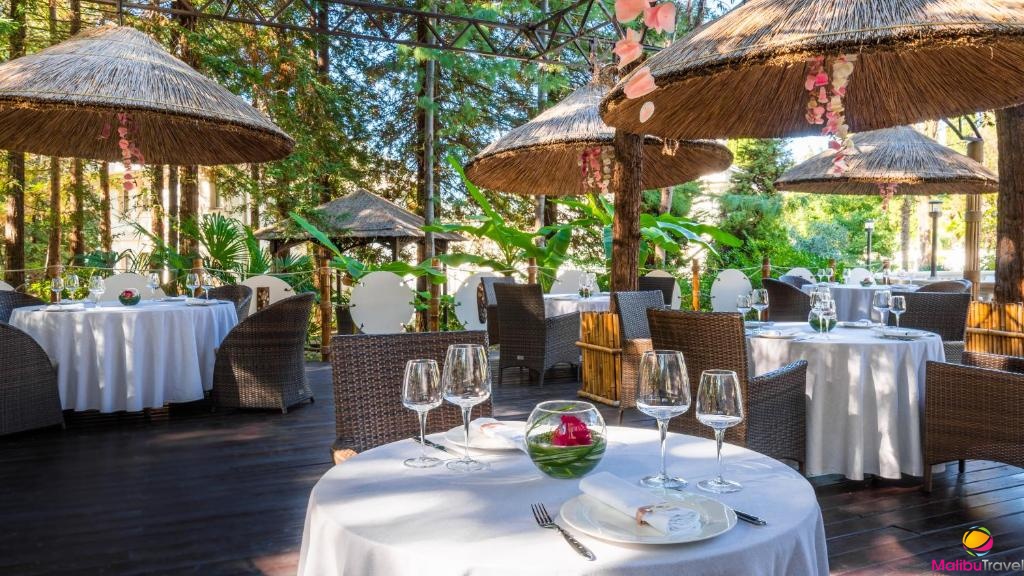 Размещение: 42 комфортабельных номера, 3 коттеджа и 4 роскошные виллы 5*
