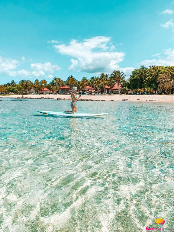 Услуги: в отеле предлагаются разнообразные развлечения и активные виды досуга, включая фитнес-центр, теннисный корт, пляжный волейбол, настольный теннис и бочче. Гостям доступны водные виды спорта, такие как виндсёрфинг, сейлинг, сапсёрфинг, катание на водном велосипеде и каякинг, а также дайвинг и сноркелинг с гидом. Кроме того, проводятся уроки кайтсёрфинга, катание на лодке с прозрачным дном и глубоководная рыбалка, а также предлагаются квадрациклы для активного отдыха. Для деловых мероприятий отель располагает четырьмя конференц-залами площадью 33, 60, 65 и 577 квадратных метров, а также предлагает услуги по обслуживанию мероприятий, включая питание и развлекательные программы.