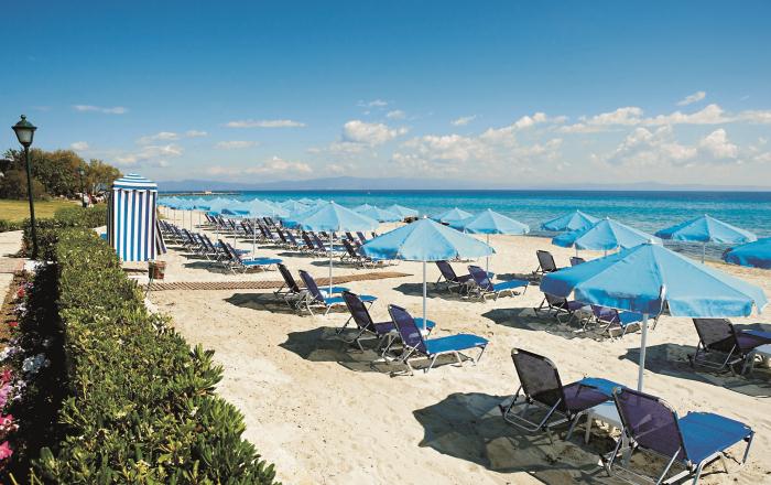Пляж: Гостиница имеет частный песчаный пляж длиной около 200метров. Ширина пляжа – 20м. Пляж оборудован шезлонгами и зонтами (за дополнительную плату). Посетители отеля во время приезда получают у службы приема специальные карты (оставляя залог), которыми пользуются для получения полотенец для бассейна в баре отеля.