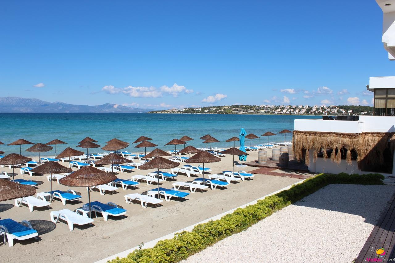 Пляж: Собственный песчаный пляж находится рядом с отелем. Шезлонги, зонтики, матрацы, пляжные полотенца - бесплатно. Пирс.