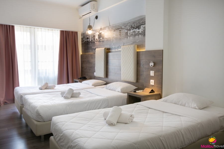 Питание: буфет с континентальным завтраком. Ресторан, который угостит гостей блюдами греческой и европейской кухни. Стильный бар с уютными диванчиками и большим выбором различных напитков и закусок. Размещение: в отеле 116 номеров.