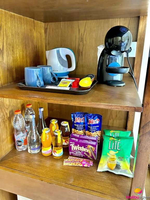 В номерах: телевизор с плоским экраном, письменный стол, ванная комната, холодильник, кофеварка/чайник.