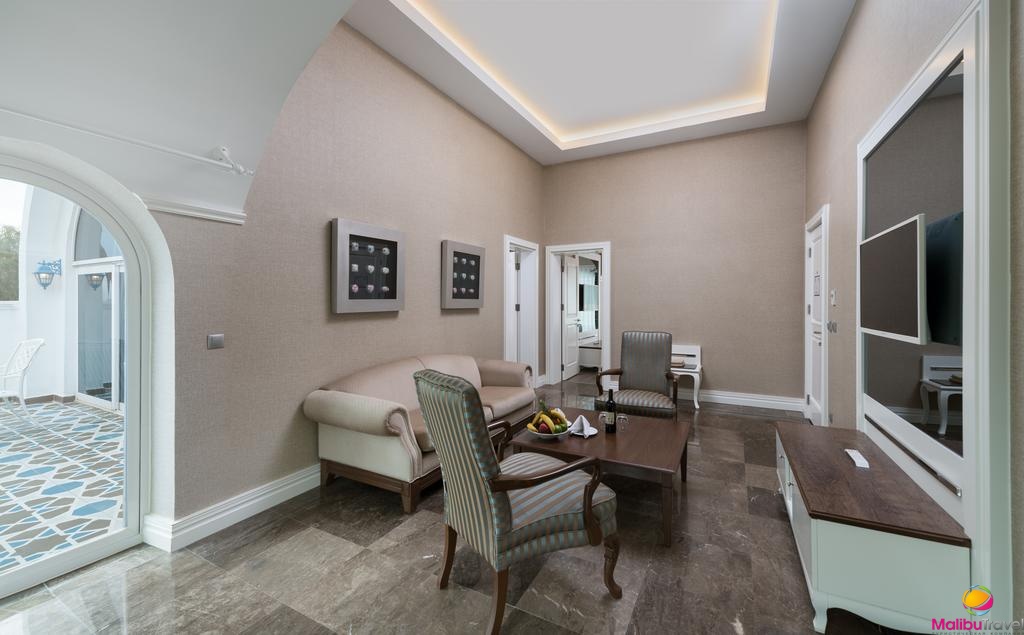 Rubi Platinum Spa resort & Suites Hotel предлaгает Вам окунутся в незaбываемую aтмосферу роскошного и комфортного отдыха. Мы постараемся сделать Ваш отдых превосходным и незабываемым. Архитектура отеля Rubi Platinum Spa resort & Suites выполнена в изысканном восточно-греческом стиле. И словно жемчужна Средиземноморья радует глаз бело-голубыми тонами зданий и восхитительной зеленой территорией. Дизайн отеля соответствует строительству нового поколения и отвечает даже самым высоким требованиям интеллектуальных строительских технологий. Общая площадь отеля - 40 000 кв. м.